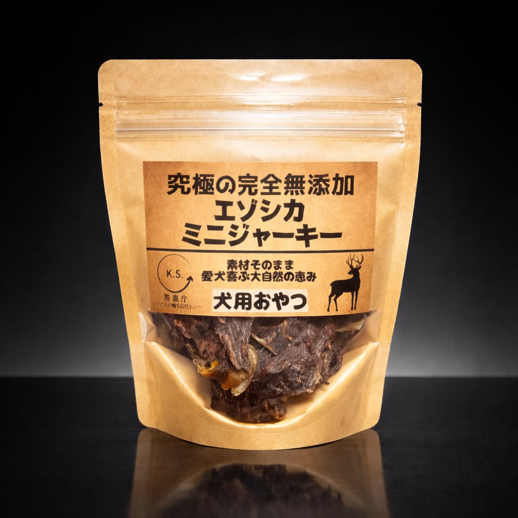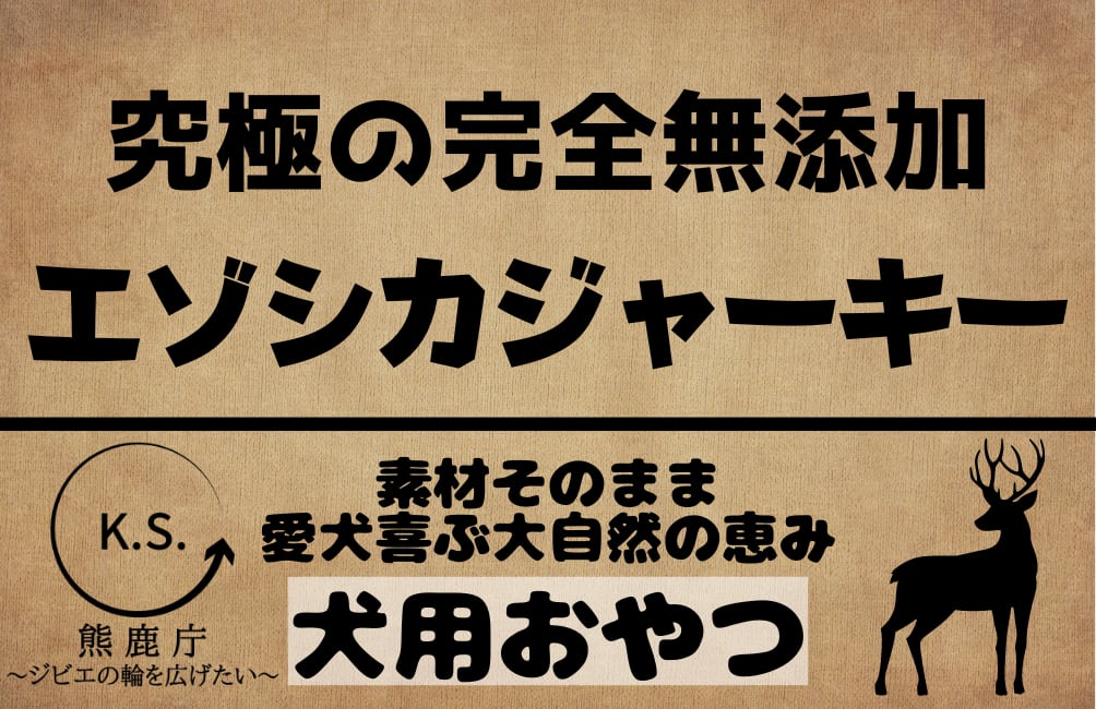 道南でも限られた、熊鹿庁の厳正な審査をクリアしたハンター(代表を含む)が、捕獲から加工まで一貫して仕上げるハンターメイドで、完全無添加の犬用おやつ。